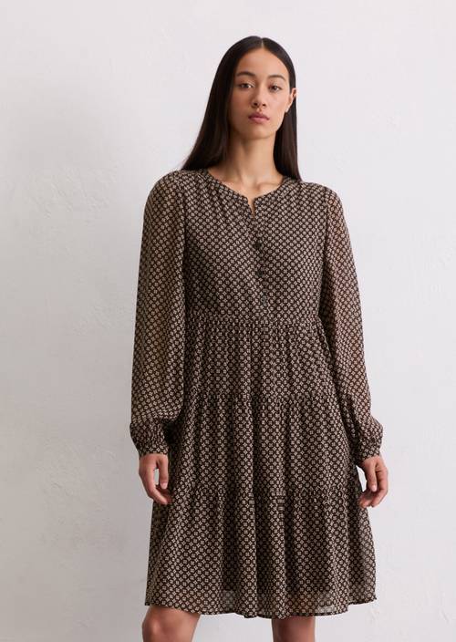 Polvimittainen mekko, joka on valmistettu viskoosista. Siinä on löysä, levenevä istuvuus, hienostunut viimeistely tilavilla hihoilla ja korkea vyötärö. Malli on vuorattu.